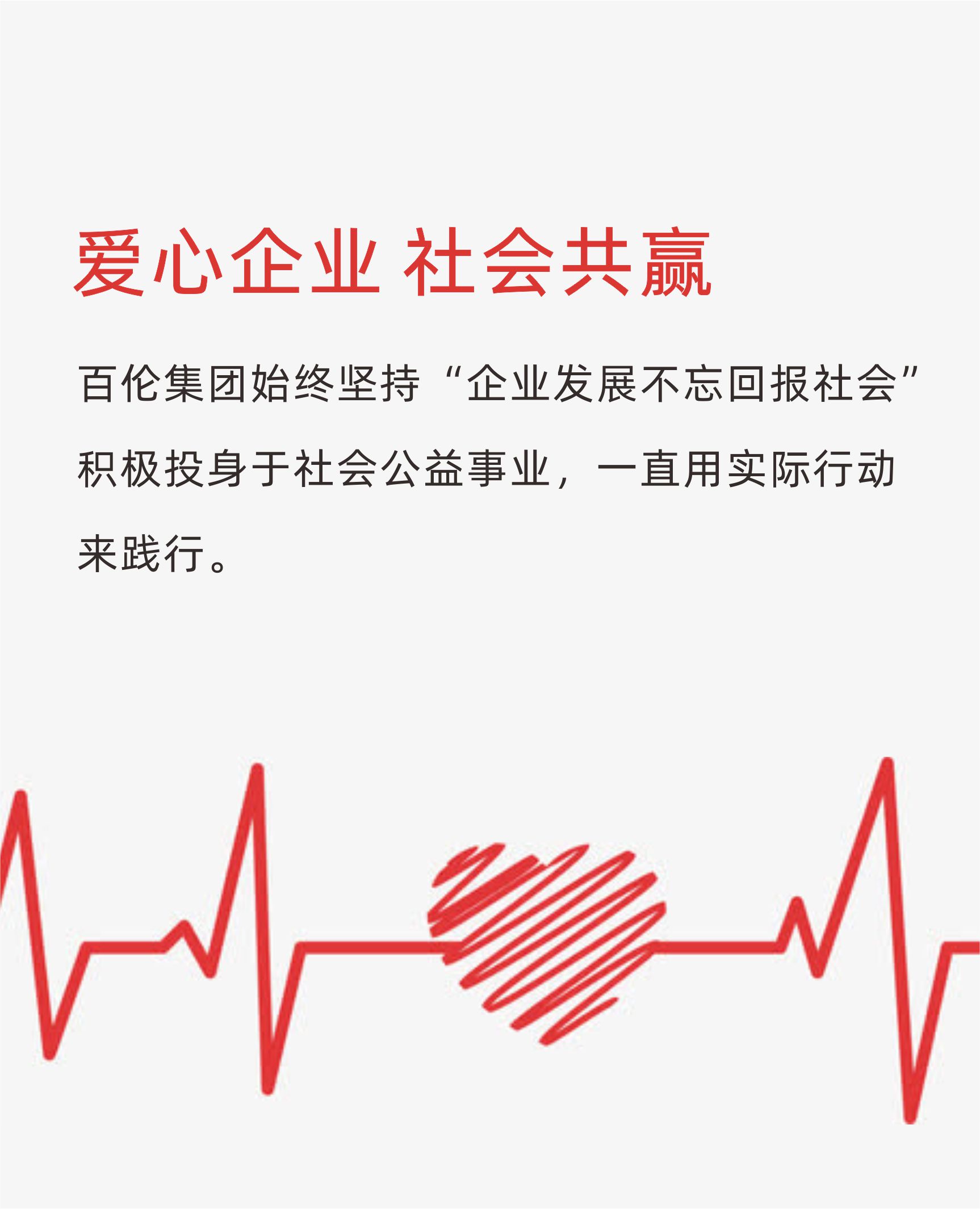 每一個成功的企業,必然是使命與責任的共生。百倫集團在不斷追求更高發展的同時,關注和投身于社會公益事業,一路前行,實現經濟效益與社會效益的和諧共贏。